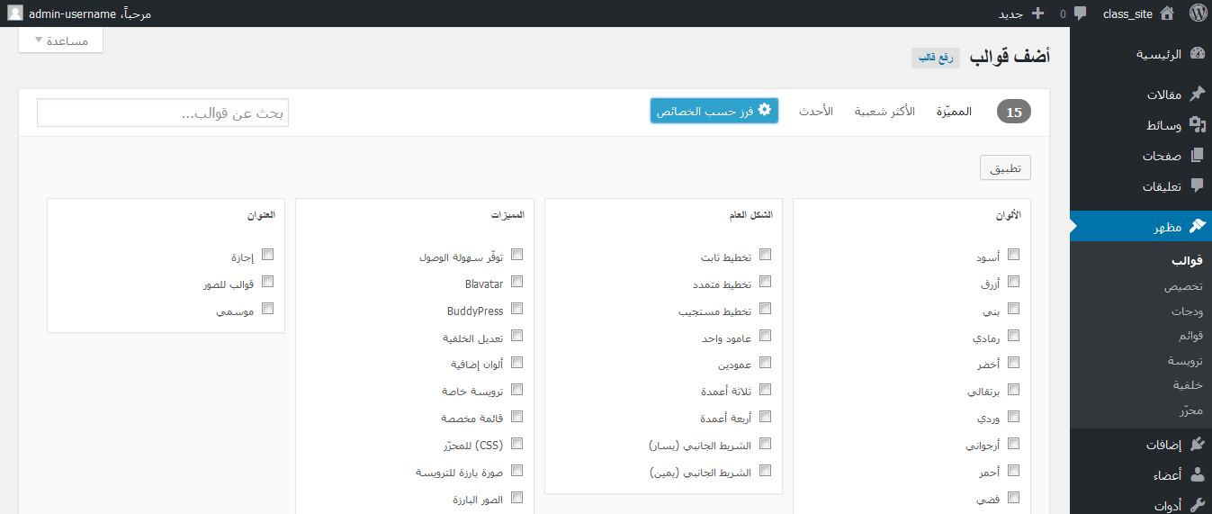 بحث فى القوالب المنصبة Search installed themes : للبحث عن قالب معين