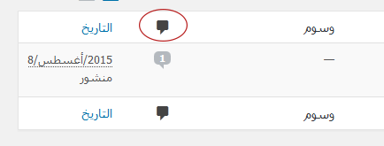 ايقونة التعليقات Comments Bubble : وهى تظهر فى كل صف لعرض عدد التعليقات فى كل مقال , بالضغط علي هذه الايقونة يتم التوجيه لصفحة ادارة التعليقات.
