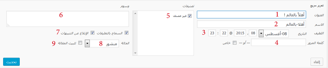 التحرير السريعالتحرير السريع Quick Edit هو اختيار يتيح لك تغيير بعض معلومات المقال دون الدخول لصفحة تحرير المقال Edit Post